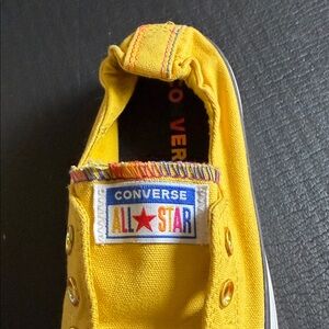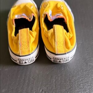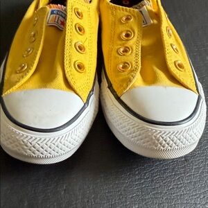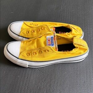 Vibrant yellow Converse sneakers. Easy slip-on design. Comfortable and stylish.