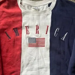 Show your patriotic spirit with this stylish red, white, and blue sweatshirt. Perfect for casual outings and those evenings during summer where it's a little bit chilly.