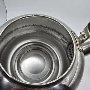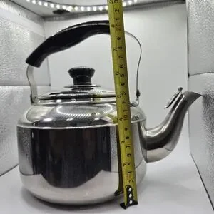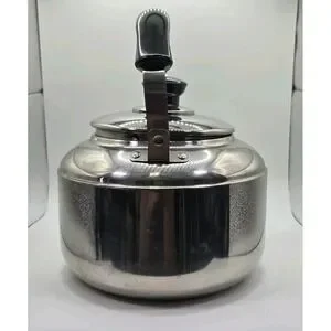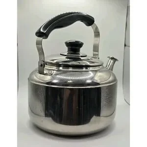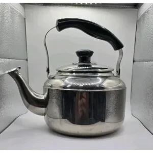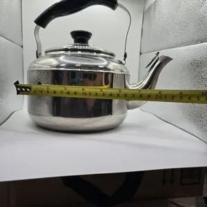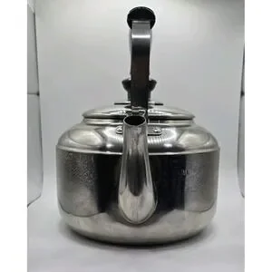 The VTG Knapp Monarch Tea Pot Kettle is a vintage stainless steel tea kettle with a capacity of 3 liters, perfect for brewing large batches of tea. The silver finish and classic design make it a stylish addition to any kitchen. This tea kettle is a practical and charming collectible for tea enthusiasts, offering both functionality and a touch of nostalgia. Thank you for looking.