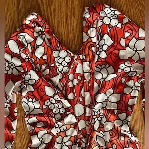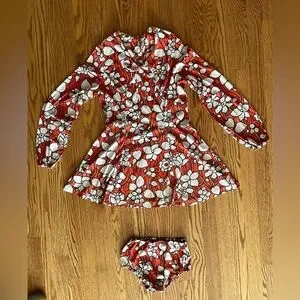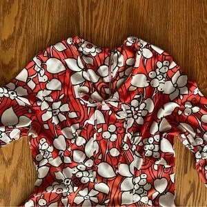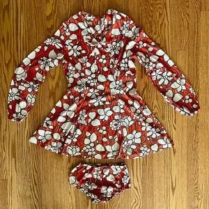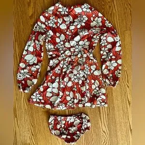 Vintage 1970’s Mod or Gogo Red & White Floral Long Sleeve Dress with Bloomers
