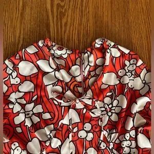 This vibrant red and white floral set is a true vintage piece from the late 1960s to early 1970s. This style, often called a "mod" or "gogo" look, was popularized by the "youthquake" movement of the era, which favored bold, psychedelic patterns and playful silhouettes.