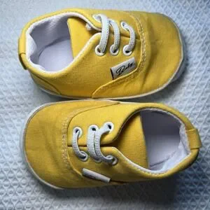 Baby Yellow Sneakers Slip on Size 3 Soft Sole Newborn Unisex Crawling Shoes