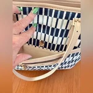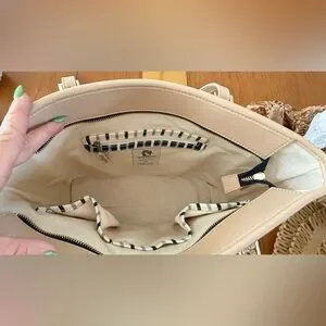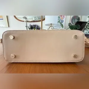 Shoulder straps with 10”- 11” drop. Top zippered closure. Inside zippered pocket and multi use inside slip pockets. 4 gold feet on bottom. All gold pulls and feet still have protective coating on them. From smoke free home.