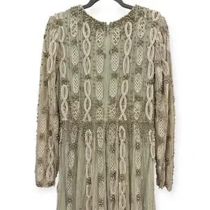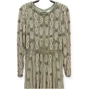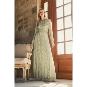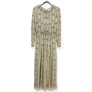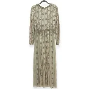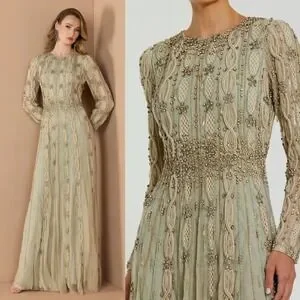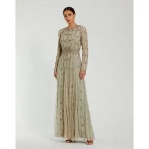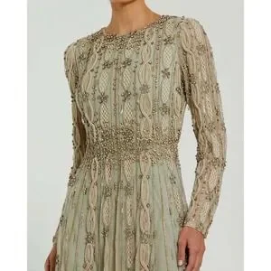 Mac Duggal NEW Embellished Mesh Long Sleeve A Line Gown Nude Sage $1,798 Size 10