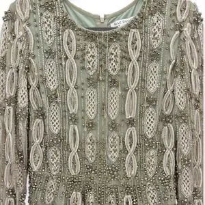 New with tags, excellent condition. Due to the nature of the heavily embellished fabric there may be a loose thread/missing bead throughout. However I didn't see anything of note.
