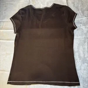 Elevate your wardrobe with this elegant brown tee featuring a detailed cream design. Perfect for versatile styling.