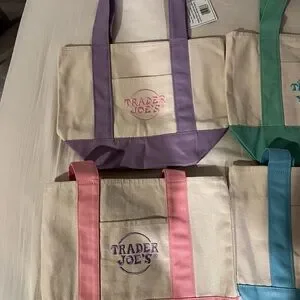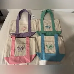 Trader Joes Mini Pastel Canvas Tote Bag 4 Pieces- All new