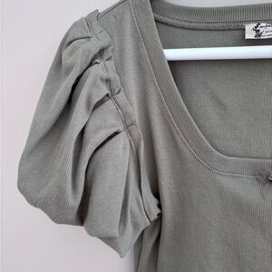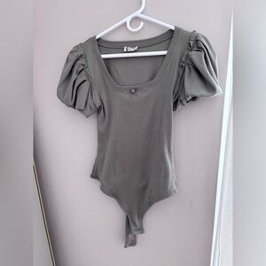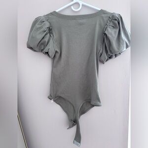 Chic puff sleeve bodysuit with a square neckline. Soft sage color. Perfect for casual or dressy occasions.