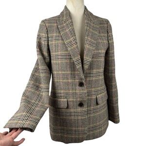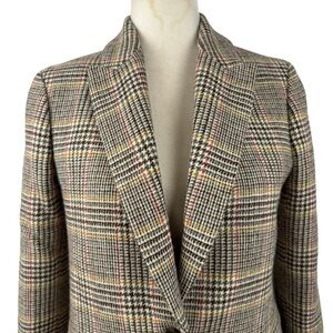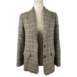 J. Crew Sommerset Houndstooth Wool Blazer Jacket Moon Quality British Cloth Brown Plaid Size 2