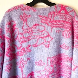 YanYan Fuzzy Laza Cardigan Alpaca Jacquard Oversized Sky Pink Large XL EUC