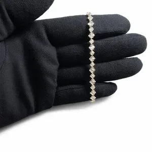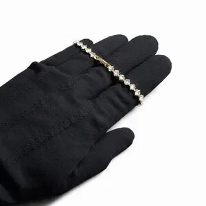 Elegant Swarovski tennis bracelet with clear crystals. Gold-tone metal setting. Sparkling, classic design. Secure clasp closure. Perfect for special occasions or everyday sparkle.