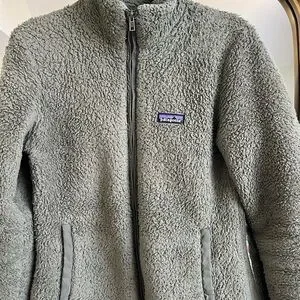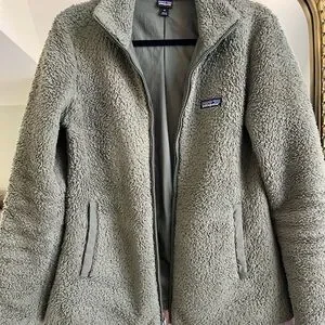 Experience ultimate comfort and warmth with this Patagonia Teddy Jacket, crafted from plush, fleece-like material in a soothing green hue. The high stand-up collar and full-length zipper ensure added protection against the cold, making it an ideal choice for chilly days. Its regular fit offers a stylish silhouette, perfect for layering over your favorite outfits.