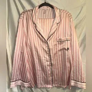Victoria's Secret Pink & White Stripe Satin Pajama Set