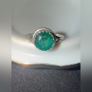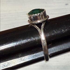 925 Sterling Silver Ring with natural Emerald Green Stone sz 6 1/2