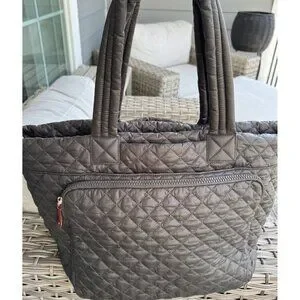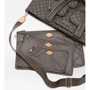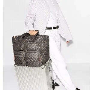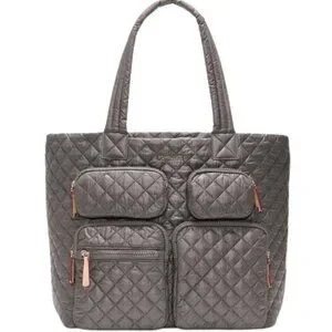 The perfect personal item. Lightweight quilted nylon comprises a slouchy, voluminous tote with double handles and plenty of pockets and pouches for organizing essentials. In the color Magnet (dark grey/gunmetal).