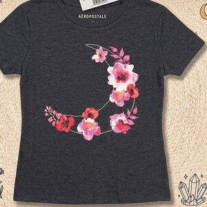 Women’s NWT ✨ Aeropostale Floral Crescent Moon Graphic Tee - Charcoal Grey - xs