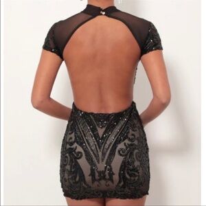 NWOT Lucy in the Sky Black Multi Sequin Open Back Mini Dress Size Medium