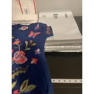 Johnny Was Gracey Crew Neck Swing Dress Womens XXS Embroidered Floral Butterfly