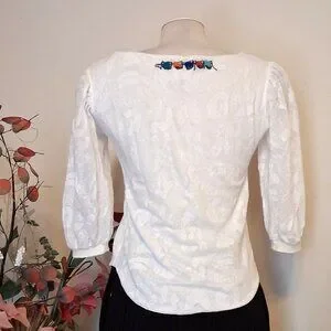 NWOT Aventures des Toiles Women’s White Ruffle Lined Blouse Top ¾ Sleeve 6