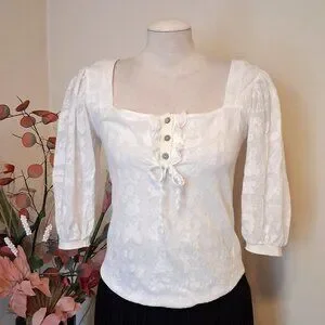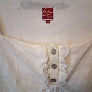 NWOT Aventures des Toiles Women’s White Ruffle Lined Blouse Top ¾ Sleeve Spring Fall Tops Size 38 fit for Size 4 or 6