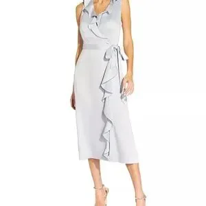 Adrianna Papell Pale Blue Ruffle Wrap Midi Dress NO BELT 16