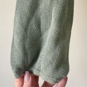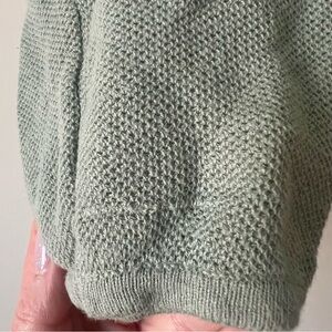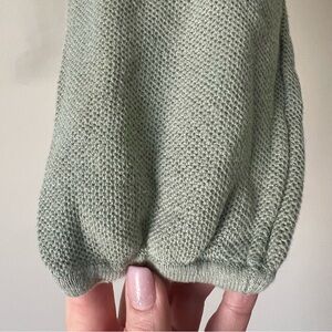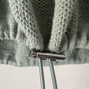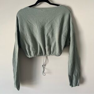 Cropped boxy style top with front drawstring hem. Soft knit fabric in sage green. Long sleeves and relaxed silhouette. Easy to layer for casual looks. Super soft and lightweight.