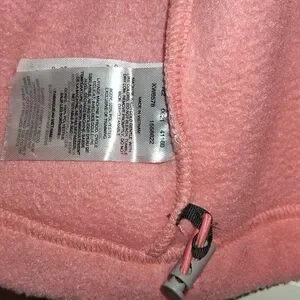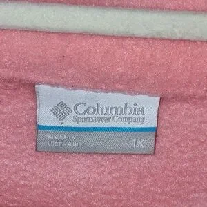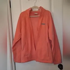 Cozy Columbia fleece with full front zipper. Soft textured fabric in light peach. Subtle Columbia logo on chest label. Comfortable layer for everyday wear.