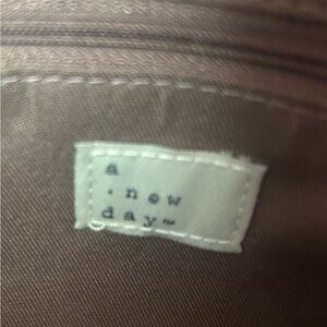 A New Day brand python-pattern tote in brown and tan. Features dual top handles and a structured silhouette. Versatile look that complements casual and dressy outfits. Durable construction with a modern neutral palette. Cross body strap included.