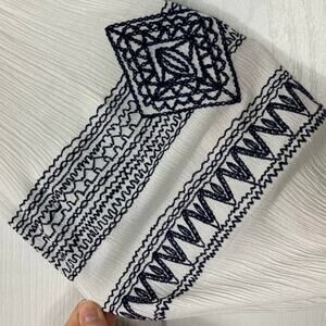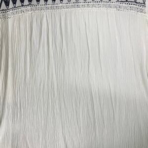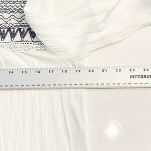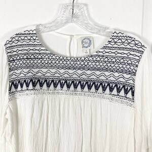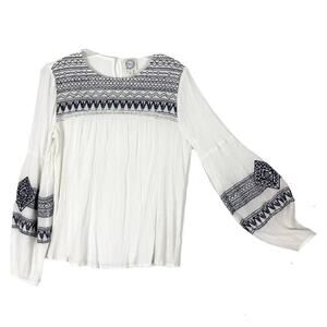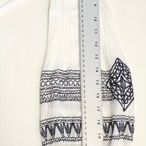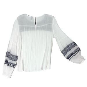 nwot BLUE RAIN Top S White Crinkle Navy-Embroidery Crochet Balloon-Long-Slv