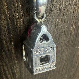 Rhodium over sterling silver pendant weighs 2.8 grams, is approximately 0.75” inches long, and is stamped BBJ, 925, and Thailand.