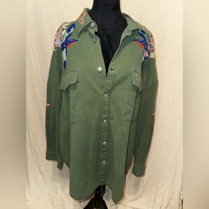 We The Free Green Embroidered Button Down Shirt