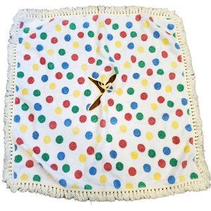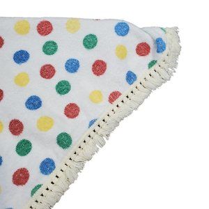 Vintage 70s Toddler Terrycloth Poncho Polka Dot Fringe 26 X 26