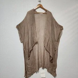 Free People All Tous Open Front Minimalist Kimono Neutral Beach Vacation Wear