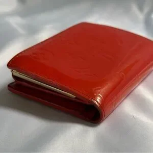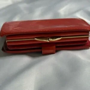 Louis Vuitton Vernis Kisslock Wallet Red Patent Leather Monogram Bifold COA