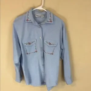 Vintage Capacity Blue Chambray Embroidered Shirt Size Medium