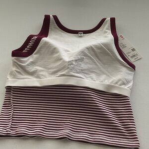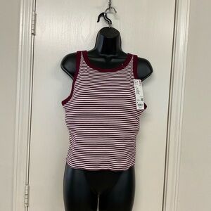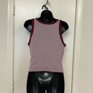 Ribbed cropped striped sleeveless tank. Burgundy and white design w/padded bra underneath. Perfect for casual wear.