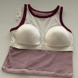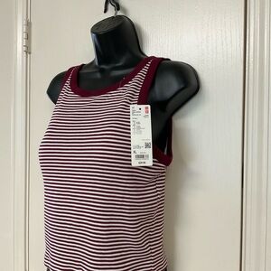 Uniqlo Burgundy and White Striped Tank Top
