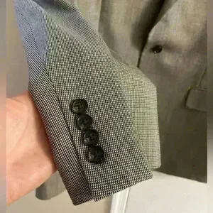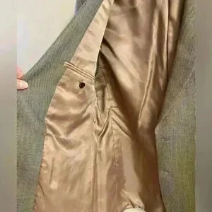 Ralph Lauren silk/wool blend blazer beige/black button front. Sz 44 L