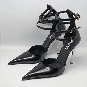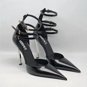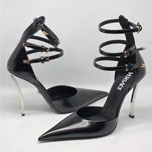 Versace Pin Point Leather Ankle Strap Pumps