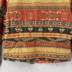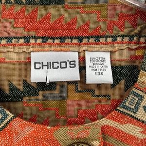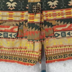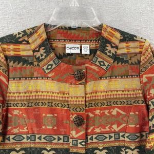 Chicos Jacket Womens Size XS Cropped Aztec Print Tan Red Green Metal Buttons