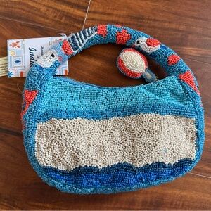 🦀 New with tags made in India viral mini bag! This purse is hand beaded all over with a crab on the beach theme and beachball zipper. Adorable for summer and hard to find!