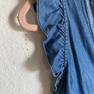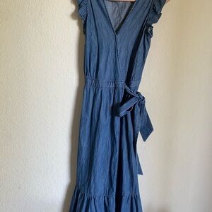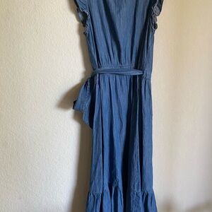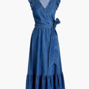 J.Crew Grand Lily Drapey Chambray Denim Blue Wrap Ruffle Hem Midi Dress 4