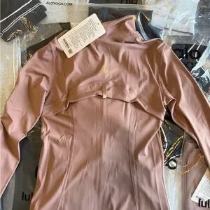 Sleek zip-front bomber jacket from lululemon. Soft stretchy fabric for easy movement. Gold-tone zipper and pocket pulls. Contoured seams for a tailored fit. Lightweight and versatile for layering.