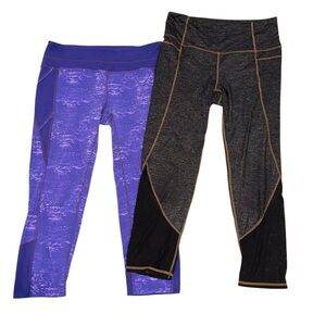 Athleta (2) Leggings Women’s Purple & Grey Cropped Capri Athletic Pants Sz S