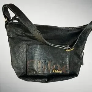 Elegant black leather Eclipse bag by Chloé. In excellent condition with minor signs of wear. There are no signs of damage or discoloration. There is an outside pocket on the front which is so convenient to hold your cellphone for quick access. Features a spacious interior and a stylish design. Has an adjustable shoulder strap so it can be worn crossbody or on the shoulder. Perfect for everyday use.