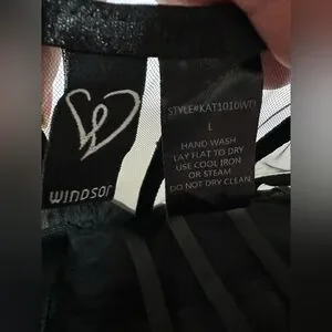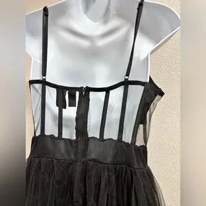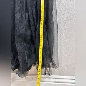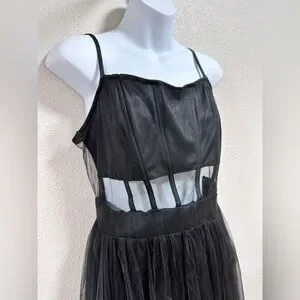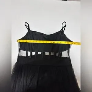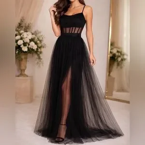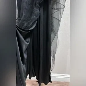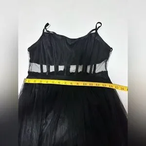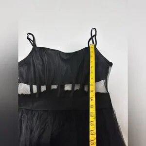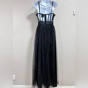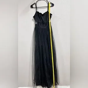 Windsor Black Tulle Cutout Waist Spaghetti Strap Leg Slit Formal Gown Large Prom