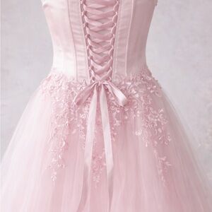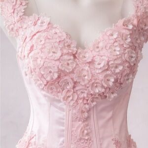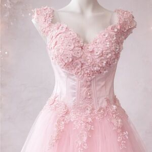 Lavetir Pink Prom Ball Gown Sz 16 Floral Tulle Satin Corset Formal Dress NWOT