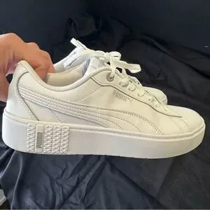 Sleek and stylish PUMA sneakers. All-white design for versatile wear. Perfect for any casual outfit.