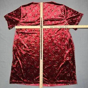 Natural Life M Velvet Floral Tunic Mini Dress Brick Red Relaxed Fit Short Sleeve