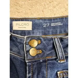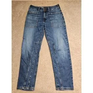 Pilcro the Wanderer High Rise Straight Utility Patch Pocket Jeans Blue 27
